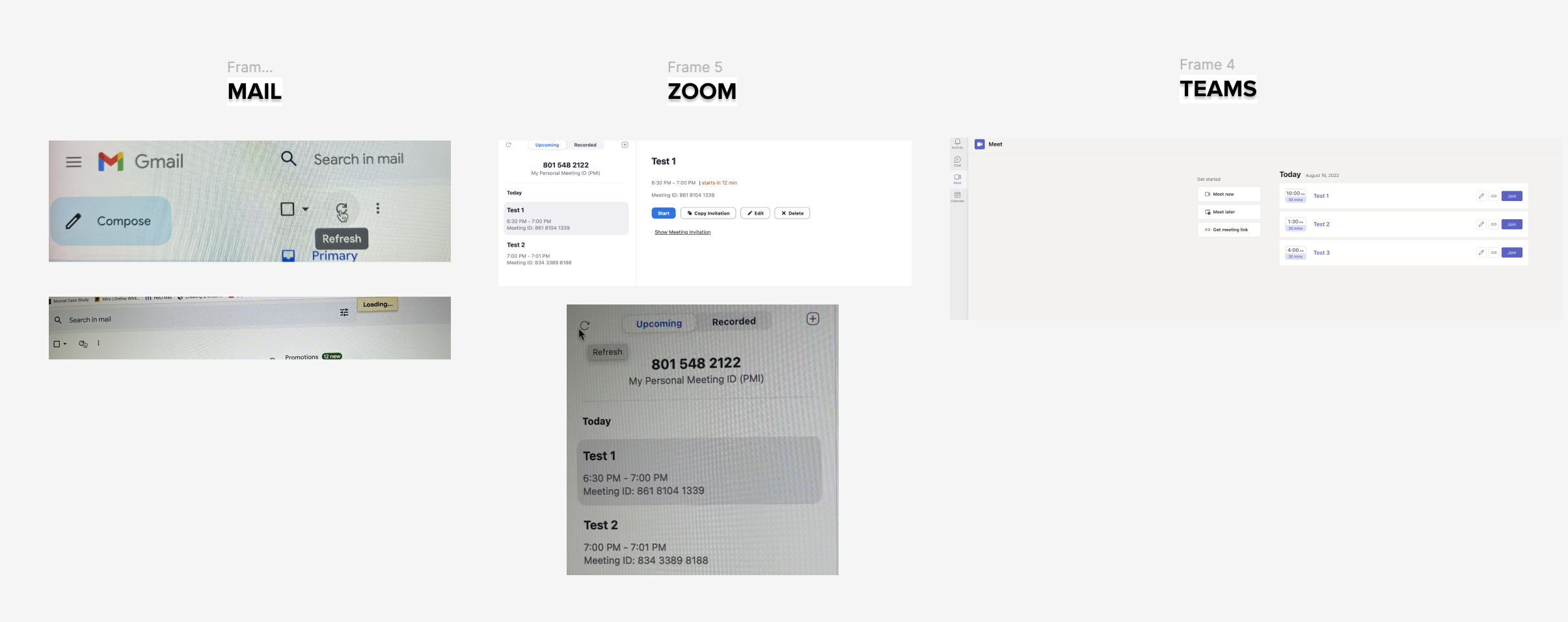 Based on my findings for the refresh behavior in apps like Facebook and Instagram I approached a design where the user could refresh the list by clicking the upcoming meeting button.